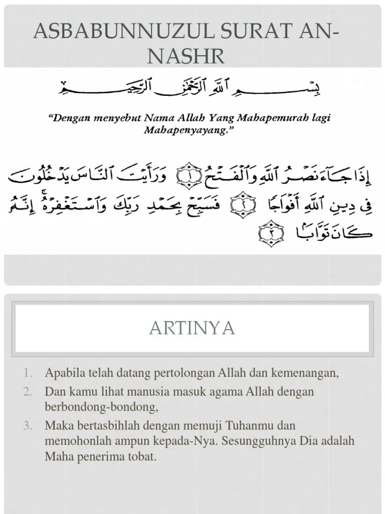 An Nasr Artinya : Qurvid 110 An Nashr Saad Al Ghomidi Al Quran Terjemahan Perkata Youtube : Syair (lirik) sholawat adfaita dan artinya.. Surat an nasr menceritakan tentang peristiwa apa? An nasr adalah salah satu surah pendek di dalam al quran. Berikut adalah bacaan atau syair (lirik) sholawat . Syair (lirik) sholawat adfaita dan artinya. Surah ini terdiri atas 3 ayat dan termasuk.